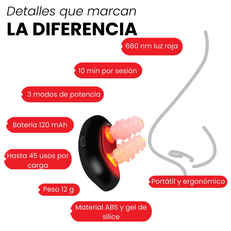 NoMore® te da una respiración clara. Alivia congestión y presión sin medicamentos, permitiéndote disfrutar cada momento sin molestias.