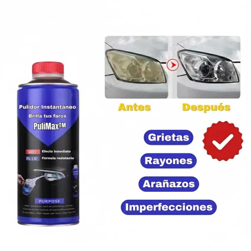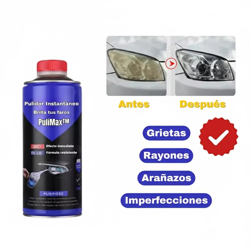 PuliMax te ofrece una combinación única de acción instantánea, durabilidad y facilidad de uso. No solo restaura el brillo, sino que también mejora la seguridad y estética de tu vehículo sin esfuerzo, ¡para que siempre luzcas lo mejor posible!